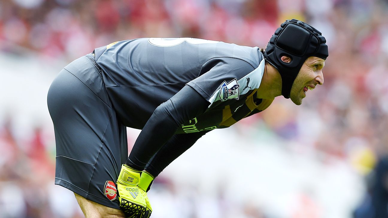 Petr cech (36) speelt sinds hij tijdens een wedstrijd een schedelbasisfractuur opliep al járen met een helm.